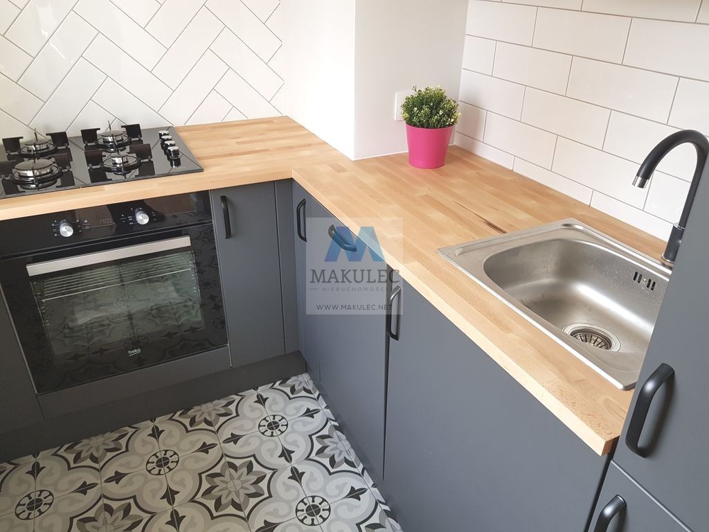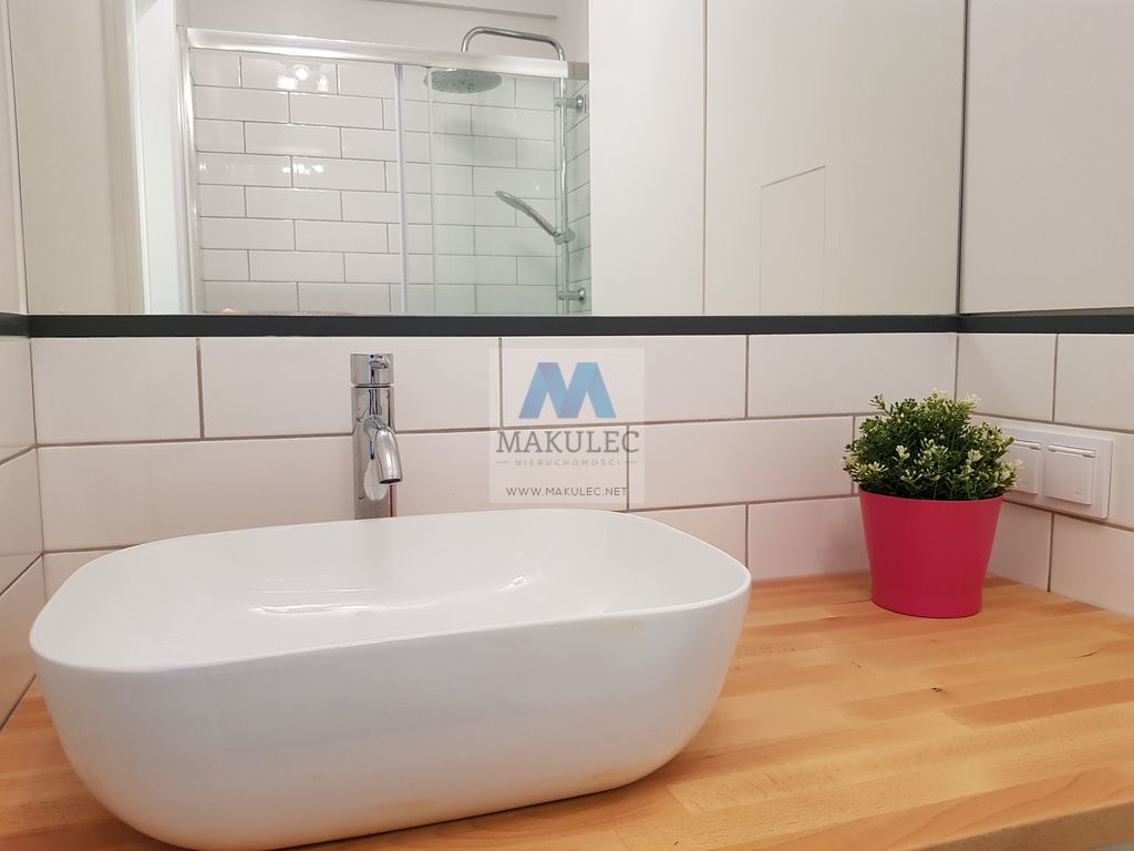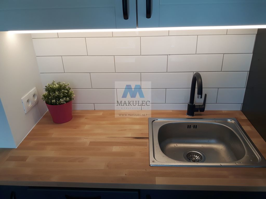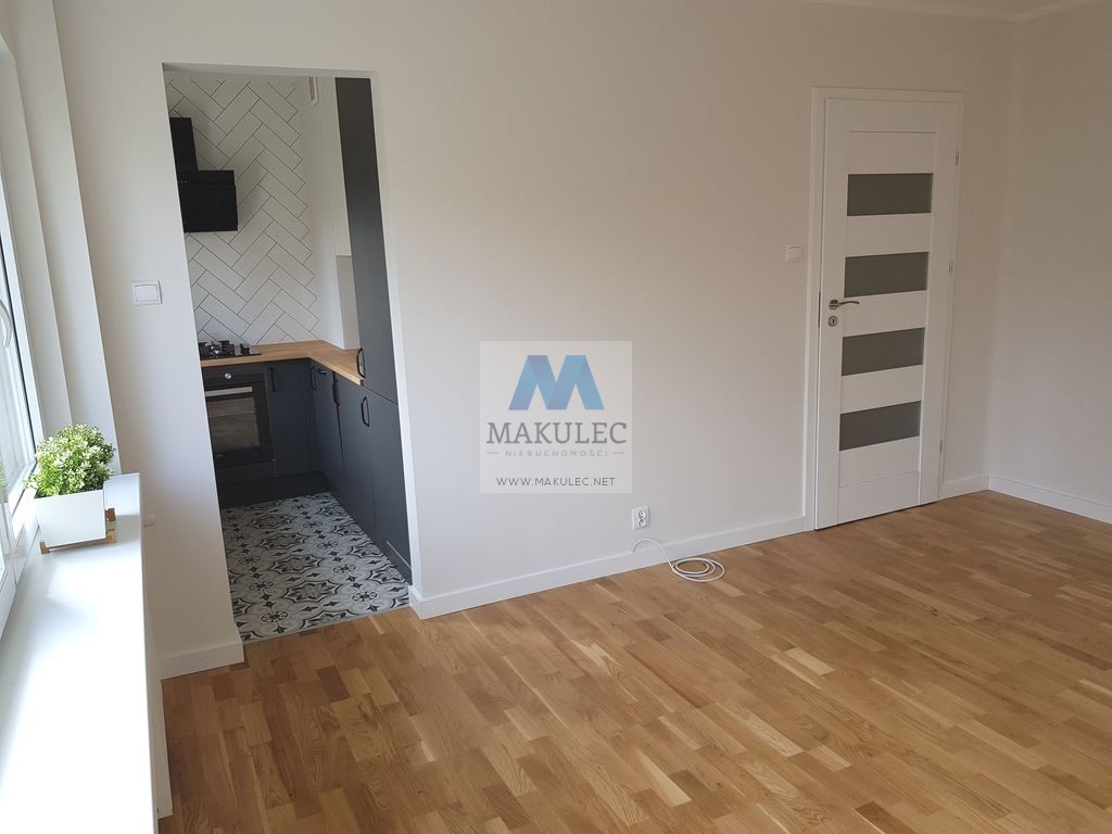 Mieszkanie składa się z dobrze doświetlonego salonu o powierzchni ok 17 metrów z którego znajduje się wejście do widnej ok. 4 metrowej kuchni. Powierzchnia łazienki wynosi ok 3 metrów a oddzielnej sypialni ok. 11 metrów. Z niej znajduje się wyjście na balkon. Nowe okna i parapety a także drzwi wewnętrzne. Na podłogach w pokojach i przedpokoju położona jest deska barlinecka. Natomiast na podłodze w kuchni i łazience gres. W kuchni nowoczesny jeszcze nie używany pochłaniacz , kuchenka z piekarnikiem, zmywarka oraz lodówka. Mieszkanie zostało pomalowane ekologicznymi farbami firmy "Flugger".