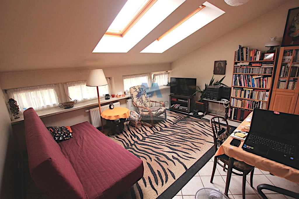 Nietuzinkowe, oryginalne dwustronne mieszkanie tuż przy LESIE KABACKIM ! Mieszkanie składa się z dwóch kondygnacji. Na niższej znajduje się wejscie do mieszkania wraz z częścią korytarza. Tu również znajduje się garderoba. Na wyższej salon z aneksem kuchennym o powierzchni ok 28 mkw, oddzielna, niezależna sypialnia o powierzchni ok. 8 mkw oraz oddzielnie łazienka z toaletą. Łazienka posiada okno. Mieszkanie w rzeczywistości sprawia wrażenie dużo wiekszego niż jest ze wzgledu na swoją wysokosć. W najwyższym pukncie ma ok 4 metrów. To sprawia, ze nad łazienką i naprzeciwko łazienki są dwie dodatkowe wnęki mogące również służyc jako schowki. Do mieszkania przynalezy komórka lokatorska, (która również jest bardzo wysoka) o powierzchni 3, 5 mkw. Mieszkanie jest ciepłe i bardzo przytulne. Ciche i spokojne sąsiedztwo.