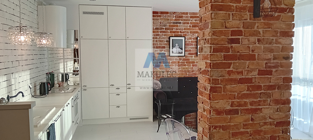 Słoneczny, przestronny, cichy apartamet z balkonem znajdujacy sie w jednej z atakcyjniejszych części Ursusa. Pierwotnie apartament składał się z salonu i dwóch sypialni natomiast dla potrzeb i komfortu właściciela w chwili obecnej stanowi salon, sypialnię oraz garderobę. Został wykończony w bardzo wysokim standardzie z dbałoscią o każdy szczegół i detal. Z pewnością jest to oferta dla osób ceniacych oryginalne i nieszablonowe rozwiązania. Salon z aneksem kuchennym posiada powierzchnię ok 23 m2., sypialnia ok 11 m2. a garderoba ok 8 m2. Dodatkowo zostało wydzialone niewielkie, zamykane pomieszczenie gospodarcze. Na wyposażeniu znajduje się również klimatyzacja.
