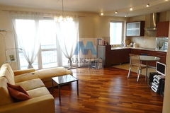 Przestronny, widny (pierwotnie trzypokojowy) apartament atrakcyjnie urządzony usytuowany na 7 piętrze z widokiem na panoramę lewobrzeżnej Warszawy z dużym balkonem. Apartament składa się z salonu połączonego z aneksem kuchennym oraz sypialni z bezpośrednim wejściem do łazienki. W mieszkaniu znajduje się również funkcjonalna garderoba a także oddzielna toaleta przeznaczona dla gości z wejściem z korytarza.