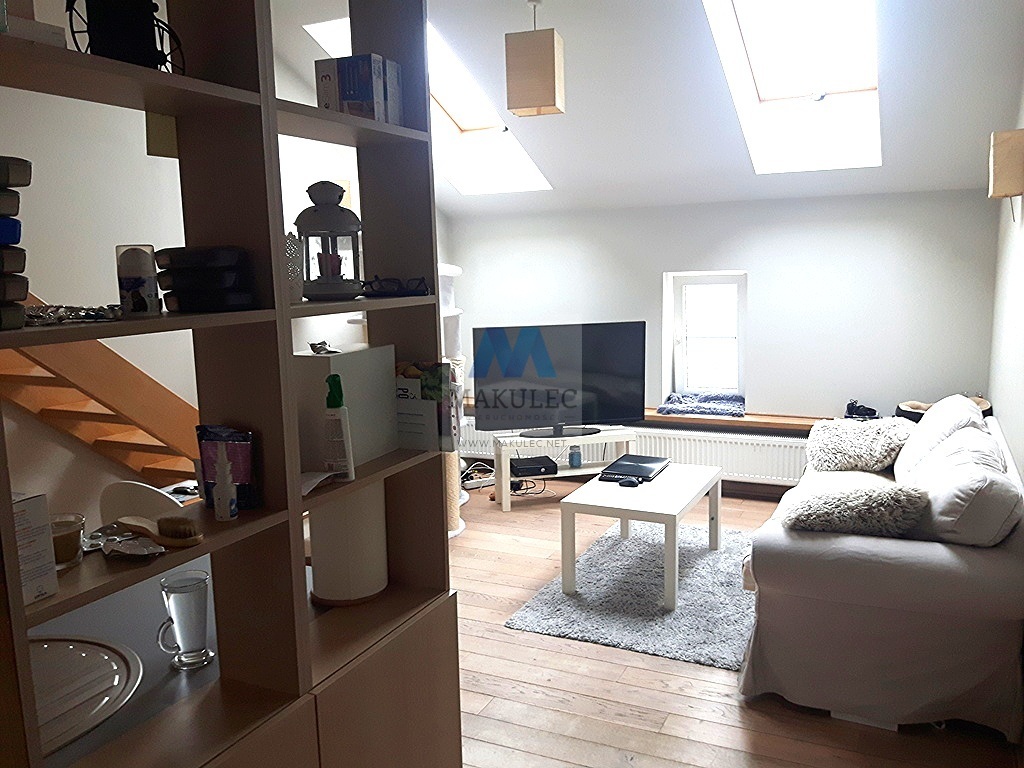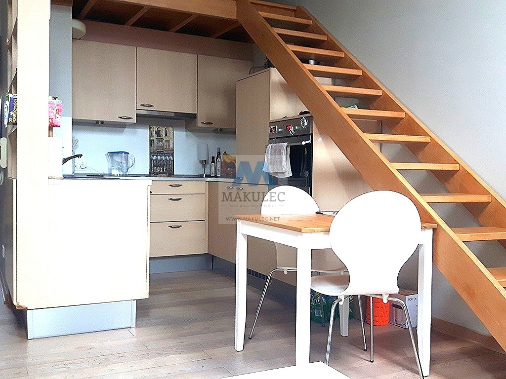 Nietuzinkowe, bardzo oryginalne mieszkanie zaprojektowane przez dekoratora wnętrz ze skosami i dwiema antresolami ! Jedna antresola o powierzchni ok 5 metrów znajduje się nad aneksem kuchennym (obecnie wykorzystywana jako biblioteczka) natomiast druga o zbliżonej powierzchni nad łazienką i korytarzem. W najwyższym miejscu lokal ma ok. 5 metrów wysokości.