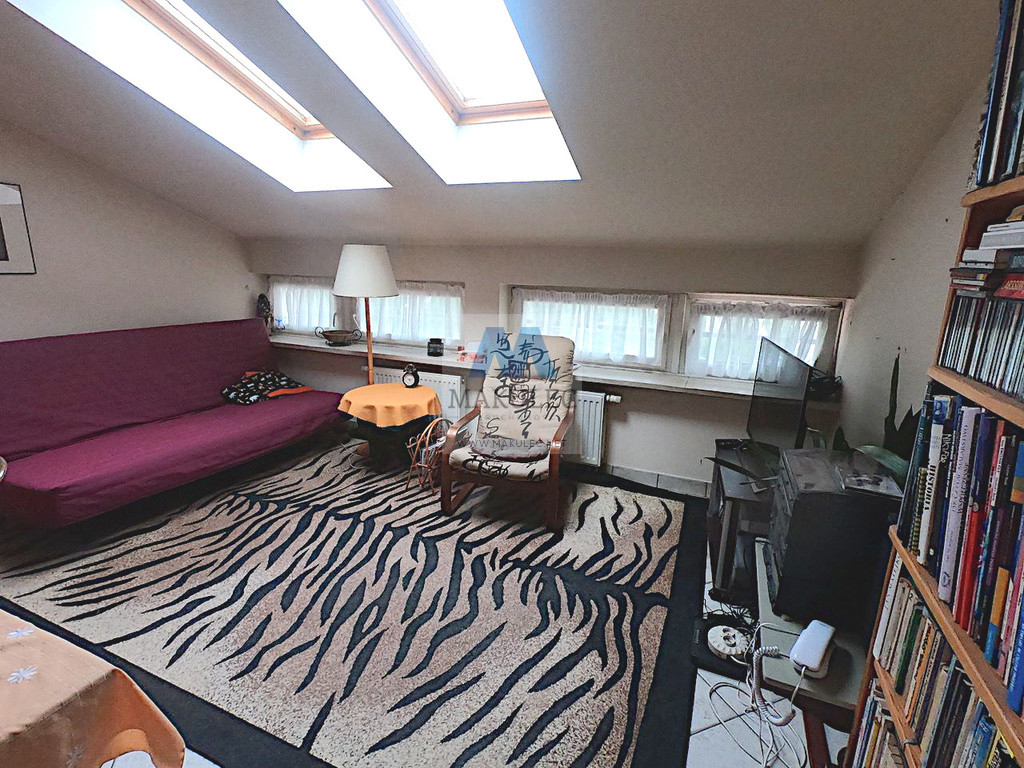 Nietuzinkowe, oryginalne dwustronne mieszkanie tuż przy LESIE KABACKIM ! Mieszkanie składa się z dwóch kondygnacji. Na niższej znajduje się wejscie do mieszkania wraz z częścią korytarza. Tu również znajduje się garderoba. Na wyższej salon z aneksem kuchennym o powierzchni ok 28 mkw, oddzielna, niezależna sypialnia o powierzchni ok. 8 mkw oraz oddzielnie łazienka z toaletą. Łazienka posiada okno. Mieszkanie w rzeczywistości sprawia wrażenie dużo wiekszego niż jest ze wzgledu na swoją wysokosć. W najwyższym pukncie ma ok 4 metrów. To sprawia, ze nad łazienką i naprzeciwko łazienki są dwie dodatkowe wnęki mogące również służyc jako schowki. Do mieszkania przynalezy komórka lokatorska, (która również jest bardzo wysoka) o powierzchni 3, 5 mkw. Mieszkanie jest ciepłe i bardzo przytulne. Ciche i spokojne sąsiedztwo.