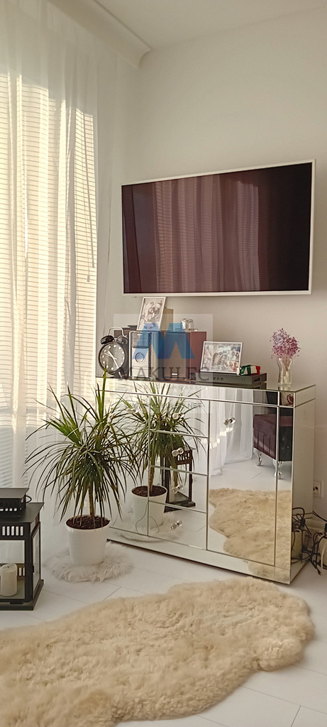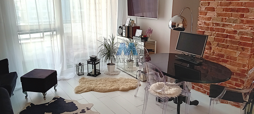 Słoneczny, przestronny, cichy apartamet z balkonem znajdujacy sie w jednej z atakcyjniejszych części Ursusa. Pierwotnie apartament składał się z salonu i dwóch sypialni natomiast dla potrzeb i komfortu właściciela w chwili obecnej stanowi salon, sypialnię oraz garderobę. Został wykończony w bardzo wysokim standardzie z dbałoscią o każdy szczegół i detal. Z pewnością jest to oferta dla osób ceniacych oryginalne i nieszablonowe rozwiązania. Salon z aneksem kuchennym posiada powierzchnię ok 23 m2., sypialnia ok 11 m2. a garderoba ok 8 m2. Dodatkowo zostało wydzialone niewielkie, zamykane pomieszczenie gospodarcze. Na wyposażeniu znajduje się również klimatyzacja.