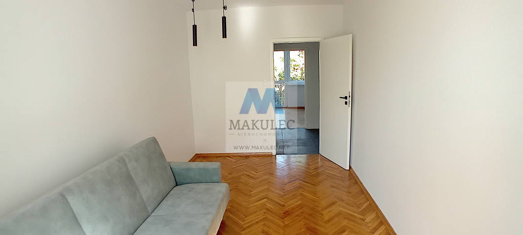 Dwupokojowe, rozkładowe, dwustronne mieszkanie z balkonem (drugi balkon francuski) świeżo po generalnym remoncie. Dwa niezależne pokoje z bardzo ładnym parkietem o powierzchniach ok 17 i 12 mkw. Widna, oddzielna kuchnia (meble robione na wymiar, nowa lodówka, płyta, piekarnik). Jest to budynek z cegły i mieszkanie ma ok 270 cm wysokości. W mieszkaniu została również wydzialona praktyczna garderoba. Piwnica. Mieszkanie będzie doposażone wg. potrzeb osoby, która w nim zamieszka. Bardzo dobra komunikacja z centrum miasta, spokojni sąsiedzi. Polecam.