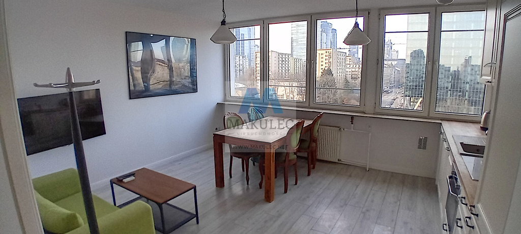 Trzypokojowy, dwustronny, komfortowy apartament z pięknym widokiem na panoramę miasta. Apartament znajduje w ścisłym centrum - zaledwie dwa przystanki tramwajowe od DWORCA CENTRALNEGO. Składa się z dwóch niezależnych, cichych sypialni o powierzchniach ok. 8 mkw. oraz ok 20 metrowego salonu połączonego z kuchnią. Balon, garderoba. W jednej sypialni pojemna, wnękowa szafa z lustrem. Na przestronność apartamentu niewątpliwie wpływa bardzo dobre doświetlenie salonu (okna są na całej jego długości). Bardzo ładna klatka schodowa, która przeszła generalny remont. Polecam zwłaszcza pasjonatom pięknych widoków oraz osobom ceniącym bliskość wszystkich atrakacji, które oferuje stolica.