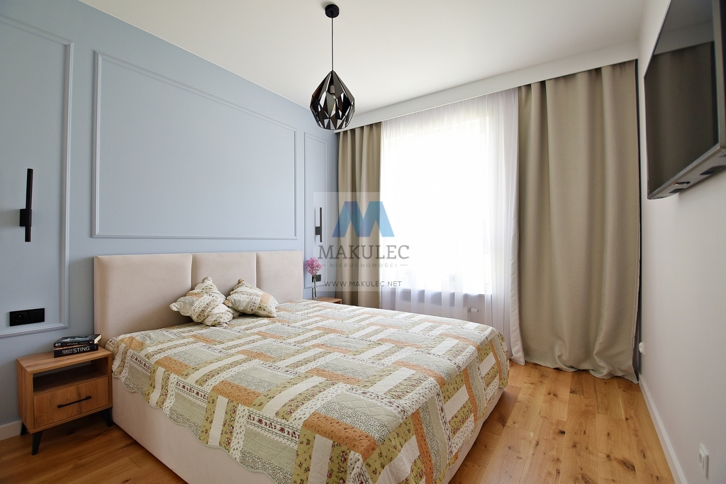 Przestronne, nietuzinkowe mieszkanie na nowym osiedlu "Neopolis", wybudowanym w 2023 r. na wysokim pierwszym piętrze z dużym balkonem. Mieszkanie jest dwustronne z wystawą okien zachód (salon z aneksem) - wschód (sypialnie) użytkowany od lutego 2024 r. Na przestronność mieszkania niewątpliwie wpływa również jego wysokość - 277 cm. Zostało wykończone z dbałością o każdy szczegół i detal.