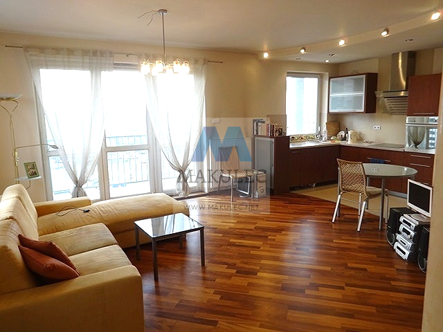 Przestronny, widny (pierwotnie trzypokojowy) apartament atrakcyjnie urządzony usytuowany na 7 piętrze z widokiem na panoramę lewobrzeżnej Warszawy z dużym balkonem. Apartament składa się z salonu połączonego z aneksem kuchennym oraz sypialni z bezpośrednim wejściem do łazienki. W mieszkaniu znajduje się również funkcjonalna garderoba a także oddzielna toaleta przeznaczona dla gości z wejściem z korytarza.