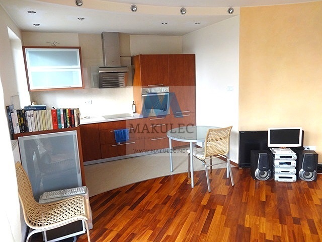 W części kuchennej na podłodze położony jest gres, w pokojach dobry gatunkowo parkiet egzotyczny. Kuchnia w pełnej zabudowie w dobrym standardzie wykończenia, oświetlona punktowo. Do mieszkania przynależy miejsce garażowe oraz komórka lokatorska (Cena mieszkania łącznie z powyższymi stanowi kwotę 528 tys)