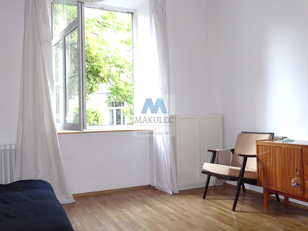 Klimatyczne, dwustronne, rozkładowe i wysokie mieszkanie (3 m.), w przedwojennej kamienicy. Salon o pow. 25 metrów (łącznie z aneksem kuchennym) oraz 19 metrowa sypialnia z widokiem na ciche, zielone podwórze. Na podłodze w pokojach parkiet dębowy w idealnym stanie, nowe okna. Zachowana oryginalna stolarka. Ciepła woda z sieci miejskiej. Wymieniona instalacja wodną, kanalizacyjna oraz elektryczna..